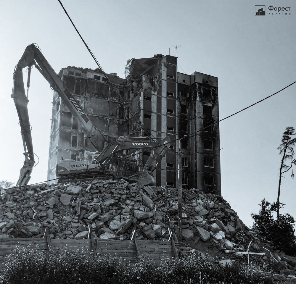 Демонтажні роботи відіграють одну з вирішальних ролей у відбудові країни. Саме тому компанія «Форест-Україна» бере активну участь у цьому процесі. Експерти у сфері будівництва, вони знають послідовність етапів та що робити із будівельним сміттям після демонтажу. Якщо ви — представник забудовника або організації, що займається відновленням України, запрошуємо до співпраці!
